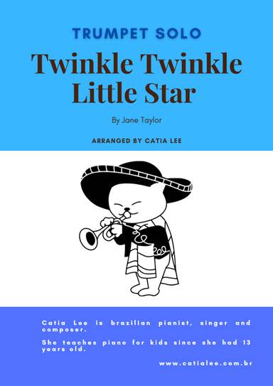 B-Flat Trumpet Solo,C Trumpet Solo,Trumpet in D Solo - Level 1 - Digital Download SKU: A0.546290 Composed by Jane Taylor. Arranged by Catia Lee. Children,Classical,Holiday,Multicultural,Traditional,World. Individual part. 2 pages. Catia Lee #156346. Published by Catia Lee (A0.546290). Twinkle Twinkle Little Star - Trumpet Solo E Major. This product was created by a member of ArrangeMe, Hal Leonard’s global self-publishing community of independent composers, arrangers, and songwriters. ArrangeMe allows for the publication of unique arrangements of both popular titles and original compositions from a wide variety of voices and backgrounds. About Digital Downloads Digital Downloads are downloadable sheet music files that can be viewed directly on your computer, tablet or mobile device. Once you download your digital sheet music, you can view and print it at home, school, or anywhere you want to make music, and you don’t have to be connected to the internet. Just purchase, download and play! PLEASE NOTE: Your Digital Download will have a watermark at the bottom of each page that will include your name, purchase date and number of copies purchased. You are only authorized to print the number of copies that you have purchased. You may not digitally distribute or print more copies than purchased for use (i.e., you may not print or digitally distribute individual copies to friends or students).