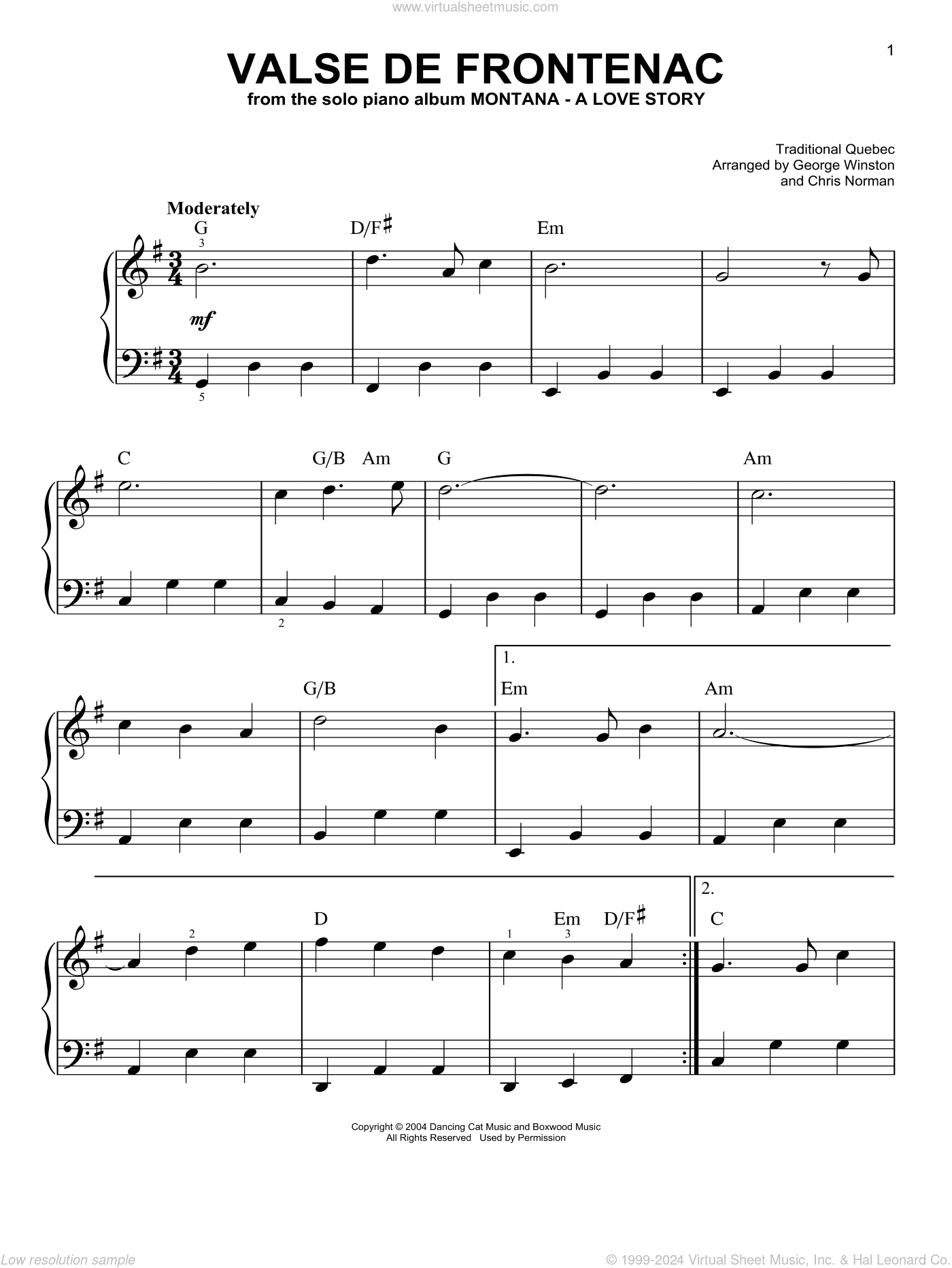 Instantly printable sheet music by George Winston for piano solo of EASY skill level.