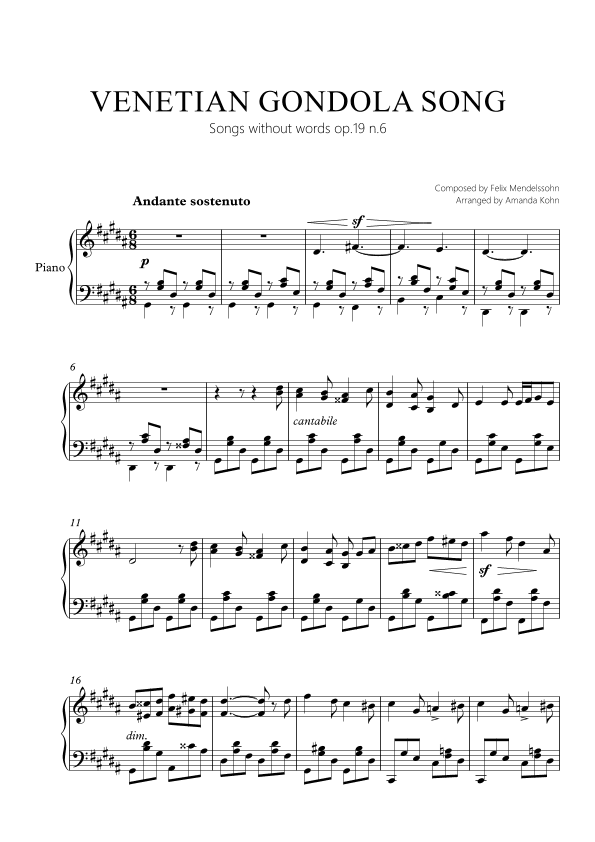 Venetian Gondola song op.19 n.6 - G#m (arr. Amanda Kohn)