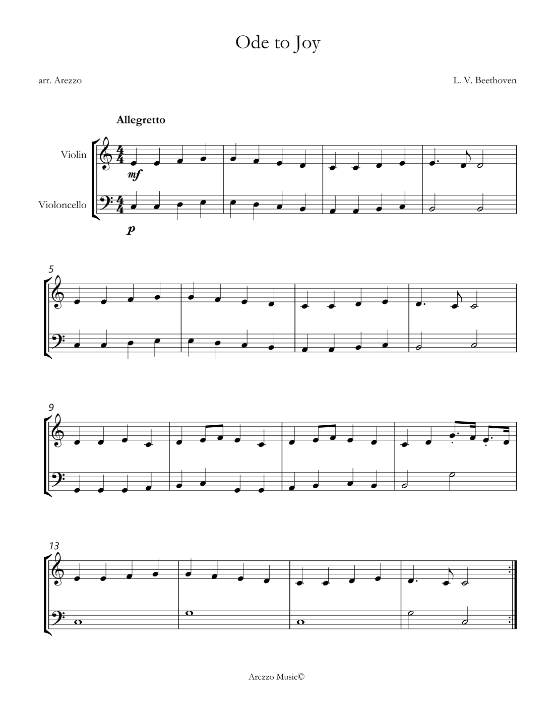 violin and cello ode to joy in c sheet music (arr. Arezzo Music)