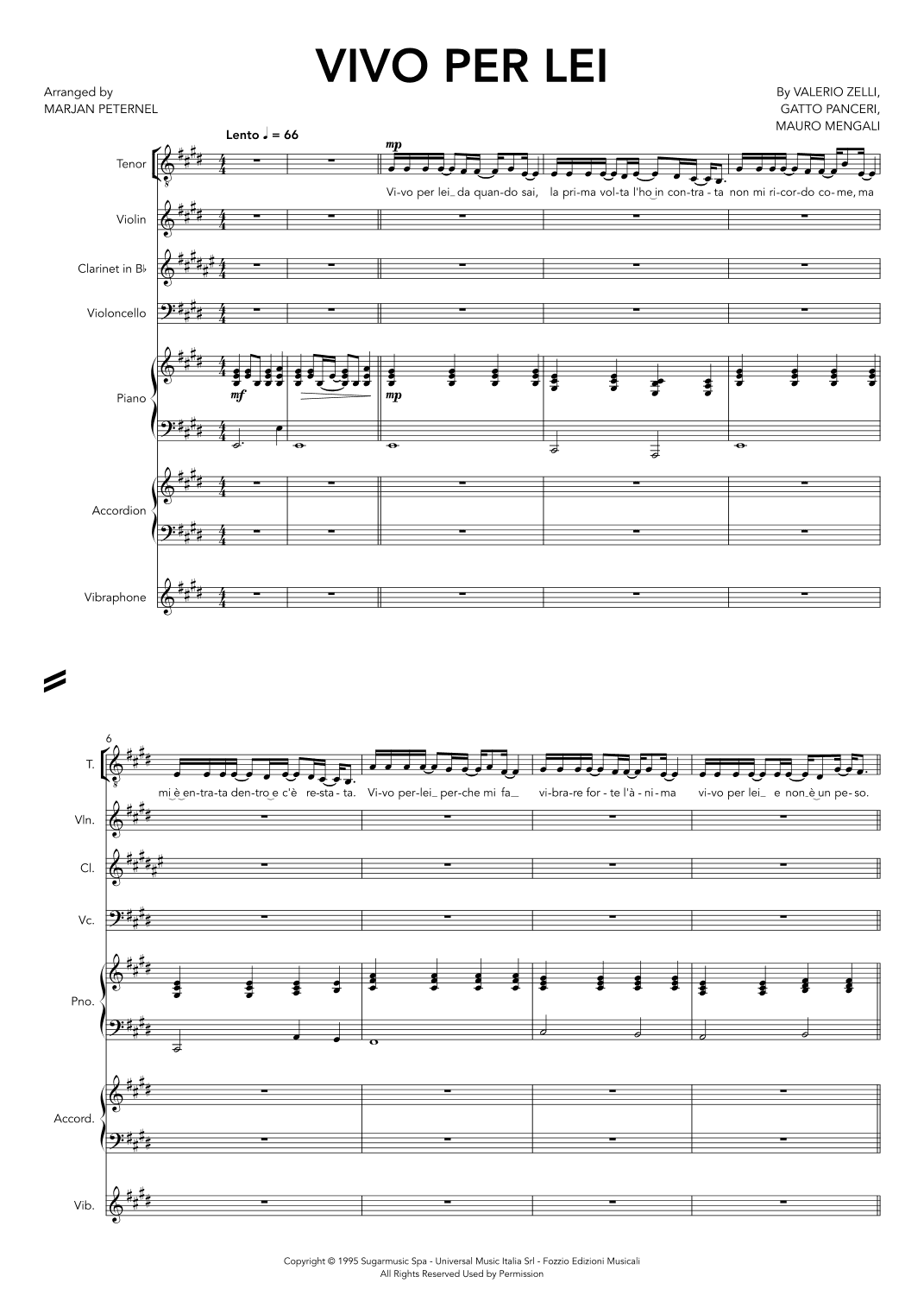 Vivo Per Lei (arr. Marjan Peternel)
