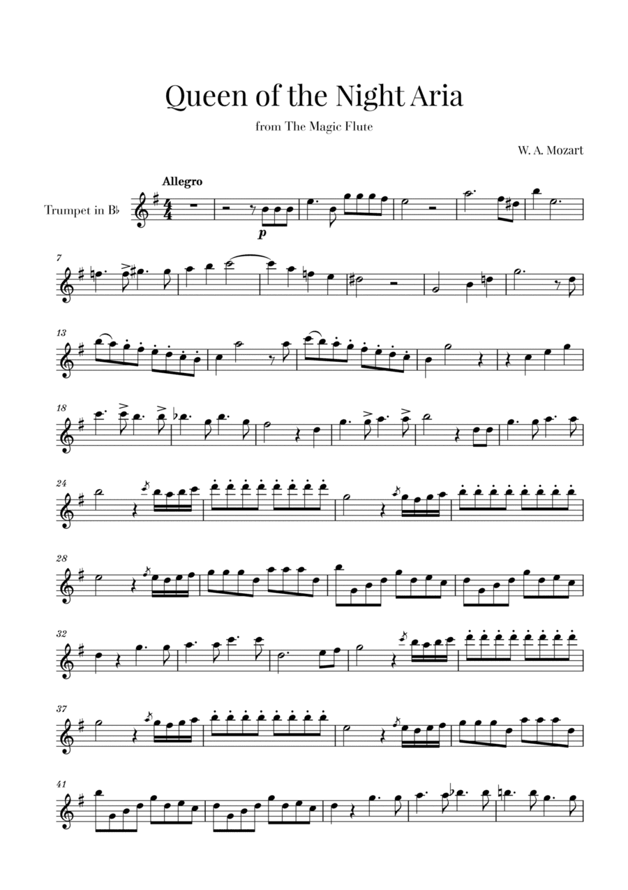 W. A. Mozart - Queen of the Night Aria (for Trumpet in Bb) (arr. Cadenza Editions)