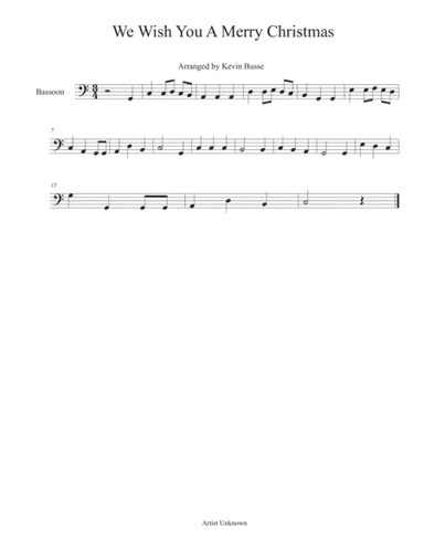 Bassoon Solo - Level 1 - Digital Download SKU: A0.1316757 By Arthur Warrell. By Arthur Warrell. Arranged by Ygor Nunes. Children,Christmas,Film/TV,Holiday. Individual part. 3 pages. Ygor Nunes #905433. Published by Ygor Nunes (A0.1316757). Here is an easy and beautiful arrangement for bassoon solo. This product was created by a member of ArrangeMe, Hal Leonard's global self-publishing community of independent composers, arrangers, and songwriters. ArrangeMe allows for the publication of unique arrangements of popular titles and original compositions from a variety of voices and backgrounds. The length, difficulty, and retail pricing are determined solely by the discretion of the person who arranged or composed it. About Digital Downloads Digital Downloads are downloadable sheet music files that can be viewed directly on your computer, tablet or mobile device. Once you download your digital sheet music, you can view and print it at home, school, or anywhere you want to make music, and you don’t have to be connected to the internet. Just purchase, download and play! PLEASE NOTE: Your Digital Download will have a watermark at the bottom of each page that will include your name, purchase date and number of copies purchased. You are only authorized to print the number of copies that you have purchased. You may not digitally distribute or print more copies than purchased for use (i.e., you may not print or digitally distribute individual copies to friends or students).