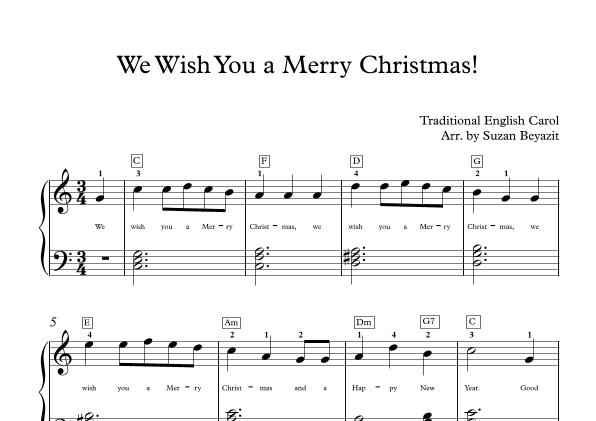 We Wish You a Merry Christmas! Easy Piano(with Chords) (arr. Suzan Beyazit)