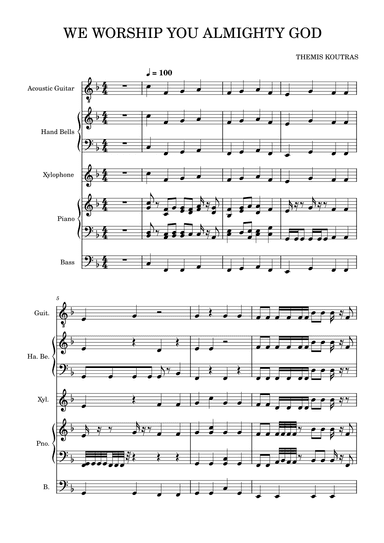 Handbell - Level 2 - Digital Download SKU: A0.1306324 By THEMIS KOUTRAS. By THEMIS KOUTRAS. Arranged by THEMIS KOUTRAS. Christian. Full Performance. Duration 81. THEMISTOKLIS KOUTRAS #895738. Published by THEMISTOKLIS KOUTRAS (A0.1306324). I wrote this on the 17 / oct / 2023 this is the handbell version. This product was created by a member of ArrangeMe, Hal Leonard’s global self-publishing community of independent composers, arrangers, and songwriters. ArrangeMe allows for the publication of unique arrangements of both popular titles and original compositions from a wide variety of voices and backgrounds. About MP3s at Sheet Music Plus You can now purchase MP3s for download from Sheet Music Plus! You'll find a variety of MP3s from instrumental play alongs to choral accompaniment tracks to great new music from emerging and established artists. After purchase, you can download your MP3 from your Sheet Music Plus Digital Library - no software installation is necessary! You can also listen to your MP3 at any time in your Digital Library.