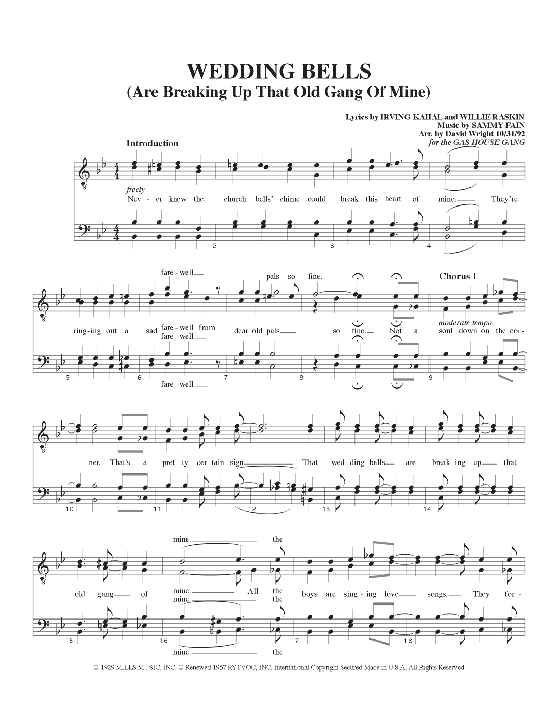 Wedding Bells (are Breaking Up That Old Gang Of Mine) - Score Only (arr. David Wright)