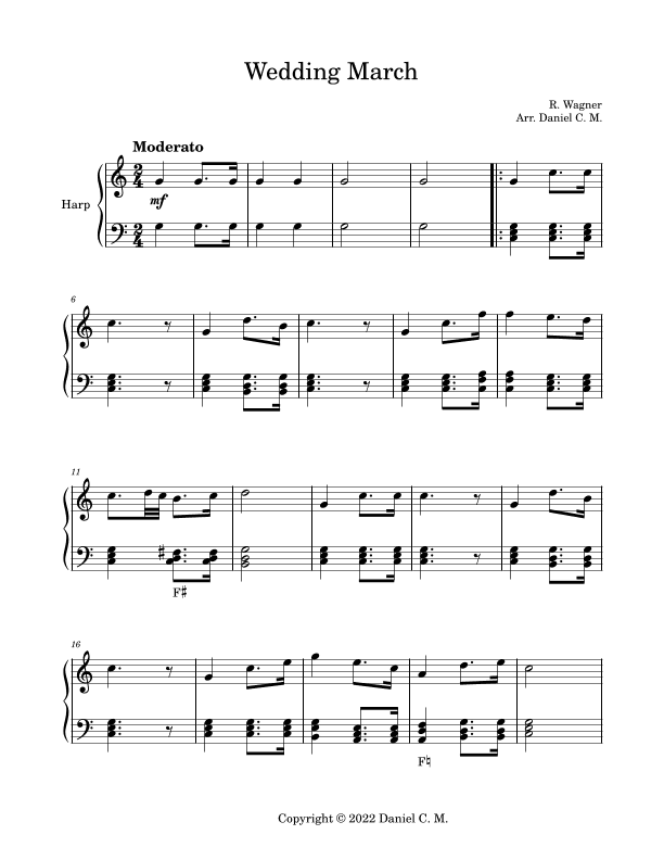 Wedding march by Wagner for harp (easy) (arr. Daniel C. M.)