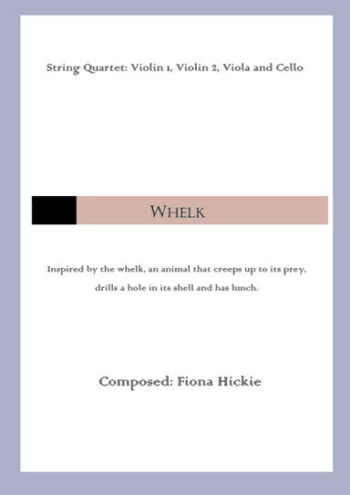 Flute,Piano - Level 3 - Digital Download SKU: A0.738333 Composed by Fiona Hickie. Classical,Contemporary. Score and part. 8 pages. Fiona Alice Hickie #6550799. Published by Fiona Alice Hickie (A0.738333). A piece for flute and piano about the whelk, a predatory sea snail. This product was created by a member of ArrangeMe, Hal Leonard's global self-publishing community of independent composers, arrangers, and songwriters. ArrangeMe allows for the publication of unique arrangements of popular titles and original compositions from a variety of voices and backgrounds. The length, difficulty, and retail pricing are determined solely by the discretion of the person who arranged or composed it. About Digital Downloads Digital Downloads are downloadable sheet music files that can be viewed directly on your computer, tablet or mobile device. Once you download your digital sheet music, you can view and print it at home, school, or anywhere you want to make music, and you don’t have to be connected to the internet. Just purchase, download and play! PLEASE NOTE: Your Digital Download will have a watermark at the bottom of each page that will include your name, purchase date and number of copies purchased. You are only authorized to print the number of copies that you have purchased. You may not digitally distribute or print more copies than purchased for use (i.e., you may not print or digitally distribute individual copies to friends or students).