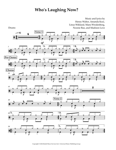 Piano Solo - Level 3 - Digital Download SKU: A0.794313 By Ava Max. By Amanda Ava Koci, Amanda Koci, Henry Walter, Jonnali Parmenius, Linus Wiklud, Linus Wiklund, Madison Love, Mans Erik Mikael Vredenberg, Mans Vredenberg, Mans Wredenberg, and Noonie Bao. Arranged by Piano Go Life. Contemporary. Score. 6 pages. Piano Go Life #6258881. Published by Piano Go Life (A0.794313). Ava Max - Who's Laughing Now Piano Cover Arranged by Piano Go Life. This product was created by a member of ArrangeMe, Hal Leonard’s global self-publishing community of independent composers, arrangers, and songwriters. ArrangeMe allows for the publication of unique arrangements of both popular titles and original compositions from a wide variety of voices and backgrounds. About Digital Downloads Digital Downloads are downloadable sheet music files that can be viewed directly on your computer, tablet or mobile device. Once you download your digital sheet music, you can view and print it at home, school, or anywhere you want to make music, and you don’t have to be connected to the internet. Just purchase, download and play! PLEASE NOTE: Your Digital Download will have a watermark at the bottom of each page that will include your name, purchase date and number of copies purchased. You are only authorized to print the number of copies that you have purchased. You may not digitally distribute or print more copies than purchased for use (i.e., you may not print or digitally distribute individual copies to friends or students).