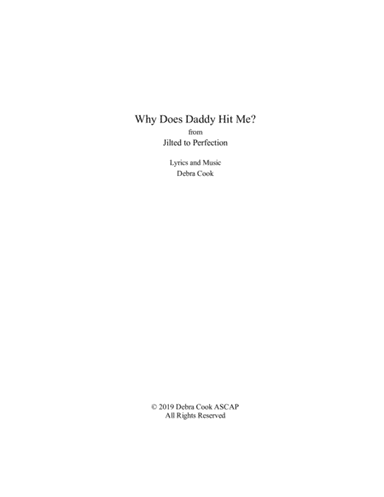 Piano,Vocal,Voice - Level 3 - Digital Download SKU: A0.1025272 Composed by Debra Cook. Musical/Show. Score. 8 pages. Professional Artists Group #4612845. Published by Professional Artists Group (A0.1025272). This song follows the questions of a child, Fred, who is abused by his alcoholic father, and the second verse is Fred at 16 deciding that he will never hit another soul and stop the generational cycle of abuse. This can be sung by a a woman relating the boy’s viewpoint or by a young man, himself, or by a child and older boy handing off verses.   This product was created by a member of ArrangeMe, Hal Leonard's global self-publishing community of independent composers, arrangers, and songwriters. ArrangeMe allows for the publication of unique arrangements of popular titles and original compositions from a variety of voices and backgrounds. The length, difficulty, and retail pricing are determined solely by the discretion of the person who arranged or composed it. About Digital Downloads Digital Downloads are downloadable sheet music files that can be viewed directly on your computer, tablet or mobile device. Once you download your digital sheet music, you can view and print it at home, school, or anywhere you want to make music, and you don’t have to be connected to the internet. Just purchase, download and play! PLEASE NOTE: Your Digital Download will have a watermark at the bottom of each page that will include your name, purchase date and number of copies purchased. You are only authorized to print the number of copies that you have purchased. You may not digitally distribute or print more copies than purchased for use (i.e., you may not print or digitally distribute individual copies to friends or students).
