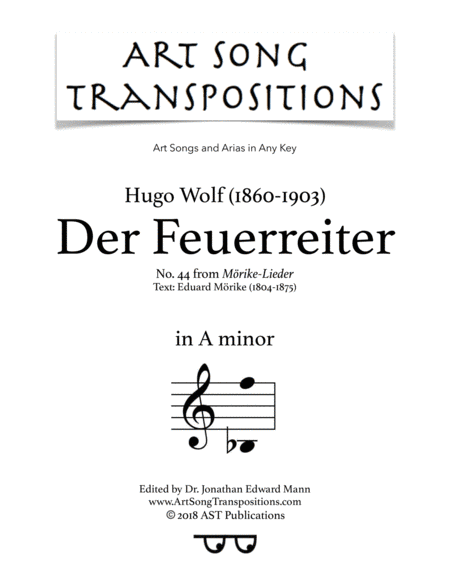 WOLF: Der Feuerreiter (transposed to A minor) (arr. ArtSongTranspositions.com)