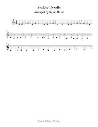 Violin Solo - Level 1 - Digital Download SKU: A0.812388 Composed by Traditional. Arranged by Christopher Bell. Holiday,Patriotic. 1 pages. Silent Home Records #5373509. Published by Silent Home Records (A0.812388). Yankee Doodle. Get patriotic for this classic American song. Level 1. Key of D Major. Approximately 1 minute long. This product was created by a member of ArrangeMe, Hal Leonard's global self-publishing community of independent composers, arrangers, and songwriters. ArrangeMe allows for the publication of unique arrangements of popular titles and original compositions from a variety of voices and backgrounds. The length, difficulty, and retail pricing are determined solely by the discretion of the person who arranged or composed it. About Digital Downloads Digital Downloads are downloadable sheet music files that can be viewed directly on your computer, tablet or mobile device. Once you download your digital sheet music, you can view and print it at home, school, or anywhere you want to make music, and you don’t have to be connected to the internet. Just purchase, download and play! PLEASE NOTE: Your Digital Download will have a watermark at the bottom of each page that will include your name, purchase date and number of copies purchased. You are only authorized to print the number of copies that you have purchased. You may not digitally distribute or print more copies than purchased for use (i.e., you may not print or digitally distribute individual copies to friends or students).