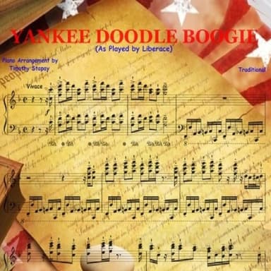 Piano Solo - Level 5 - Digital Download SKU: A0.785589 Composed by American Folk Song. Arranged by Timothy Stapay. Broadway,Film/TV,Folk,Holiday,Musical/Show,Patriotic. Score. 9 pages. Timothy Stapay #5982805. Published by Timothy Stapay (A0.785589). "Yankee Doodle" is arranged as a boogie-woogie piano solo; in the style of Liberace.It is a patriotic American folk song, which dates back to before the American Revolutionary War.And it is considered a song of celebration of the American Spirit. This is a fun arrangement thatwill amaze your friends and family! Learn to play this Patriotic song in the sensational Liberace style!The song was a pre-Revolutionary War song originally sung by British military officers to mock the disheveled, disorganized colonial "Yankees" with whom they served in the French and Indian War. It was written around 1755 by British Army surgeon Dr. Richard Shuckburgh while campaigning in upper New York, and the British troops sang it to make fun of their stereotype of the American soldier as a Yankee simpleton who thought that he was stylish if he simply stuck a feather in his cap.  It was also popular among the Americans as a song of defiance, and they added verses to it that mocked the British troops and hailed George Washington as the Commander of the Continental army. By 1781, Yankee Doodle had turned from being an insult to being a song of national pride! This product was created by a member of ArrangeMe, Hal Leonard’s global self-publishing community of independent composers, arrangers, and songwriters. ArrangeMe allows for the publication of unique arrangements of both popular titles and original compositions from a wide variety of voices and backgrounds. About Digital Downloads Digital Downloads are downloadable sheet music files that can be viewed directly on your computer, tablet or mobile device. Once you download your digital sheet music, you can view and print it at home, school, or anywhere you want to make music, and you don’t have to be connected to the internet. Just purchase, download and play! PLEASE NOTE: Your Digital Download will have a watermark at the bottom of each page that will include your name, purchase date and number of copies purchased. You are only authorized to print the number of copies that you have purchased. You may not digitally distribute or print more copies than purchased for use (i.e., you may not print or digitally distribute individual copies to friends or students).