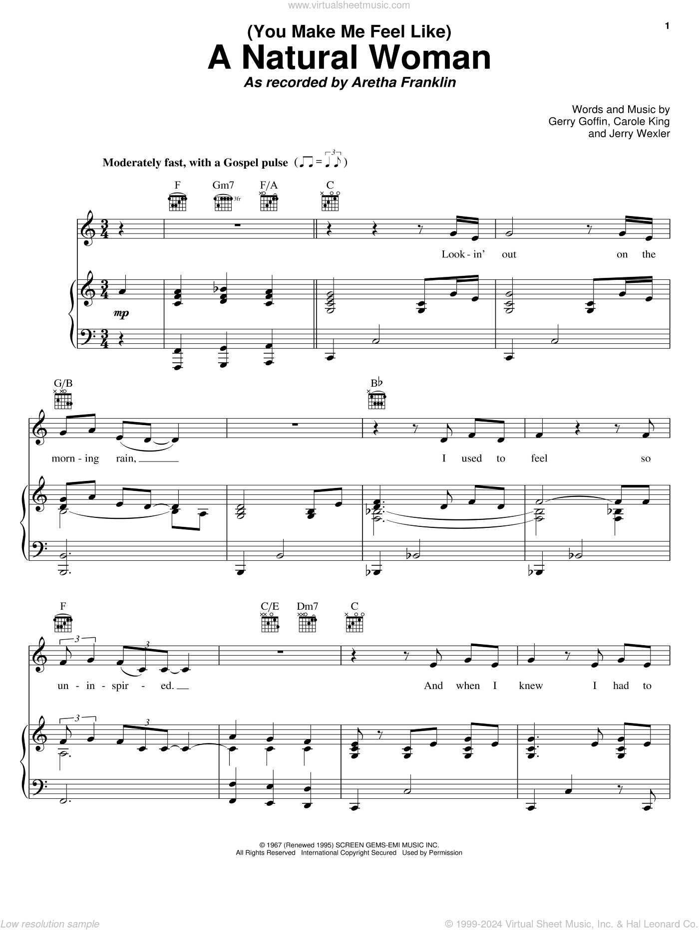 Digital sheet music for voice, piano or guitar, version 2NOTE: chords, lead sheet indications and lyrics may be included (please, check the first page above before to buy this item to see what's included)Publisher: Hal LeonardContributors to this music title:Carole King (writer)Gerry Goffin (writer)Jerry Wexler (writer)This item includes: PDF (digital sheet music to download and print), Interactive Sheet Music (for online playback, transposition and printing). You can transpose this music in any key.Instrumentation:voice, piano or guitarSkill Level:intermediateGenre:pop, r & b, rock, soulPages:7